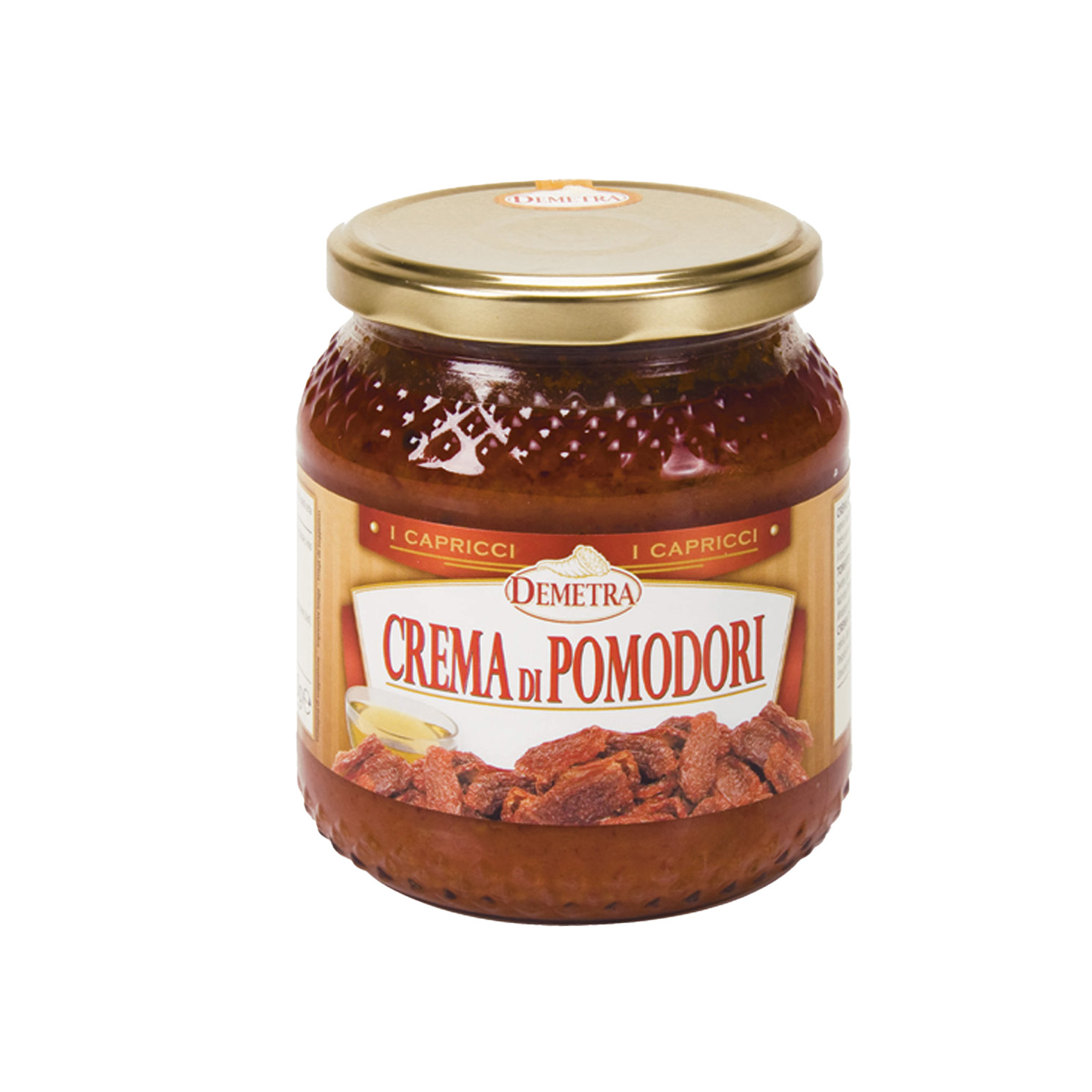 Crema ottenuta dalla macinazione di pomodori secchi, carnosi, amalgamati con olio e spezie. Dal gusto mediterraneo, molto saporita, è indicata per primi piatti, per farciture di panini, bruschette, crostini e pasticcini salati