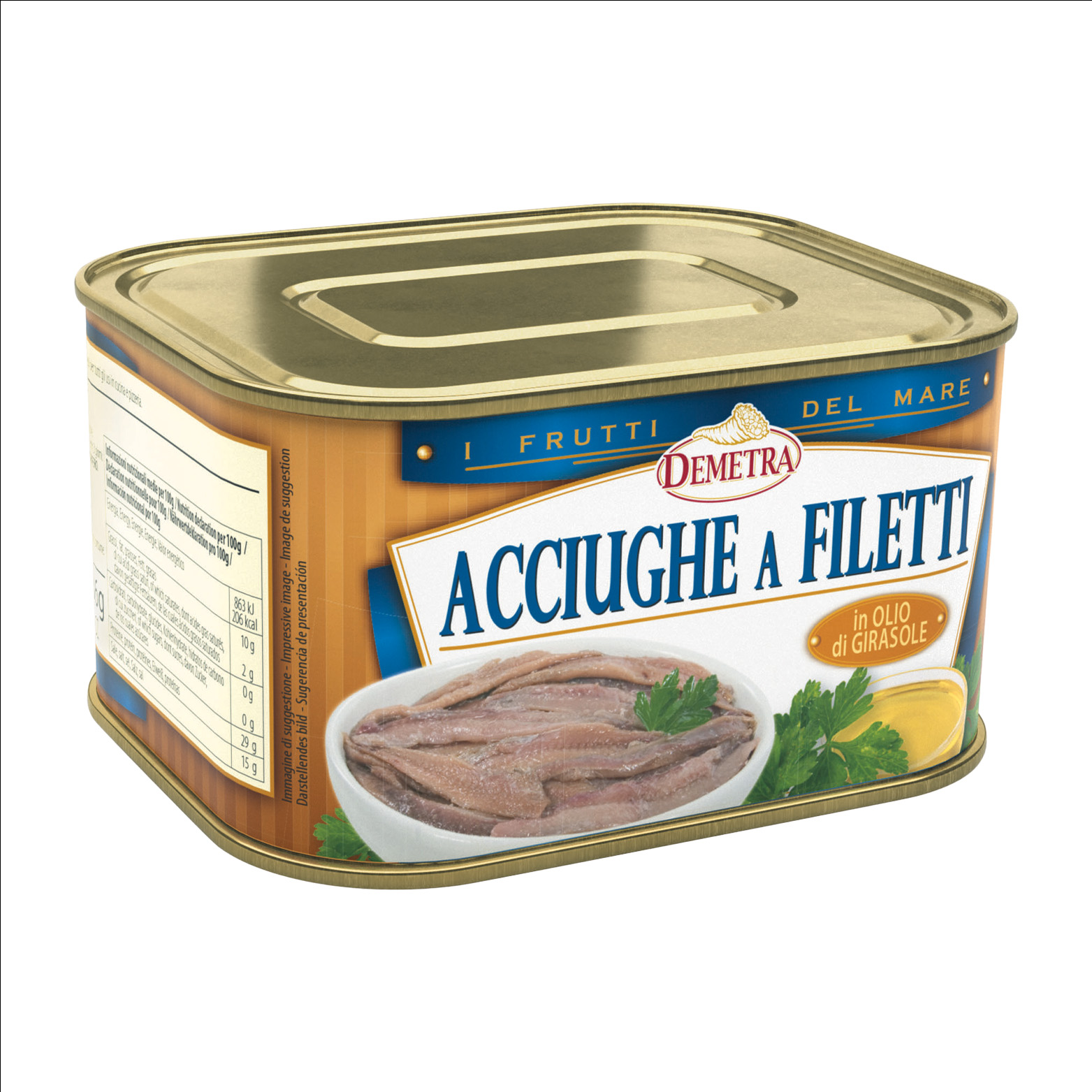 FILETTI DI ACCIUGHE IN OLIO DI GIRASOLE DEMETRA LATTA