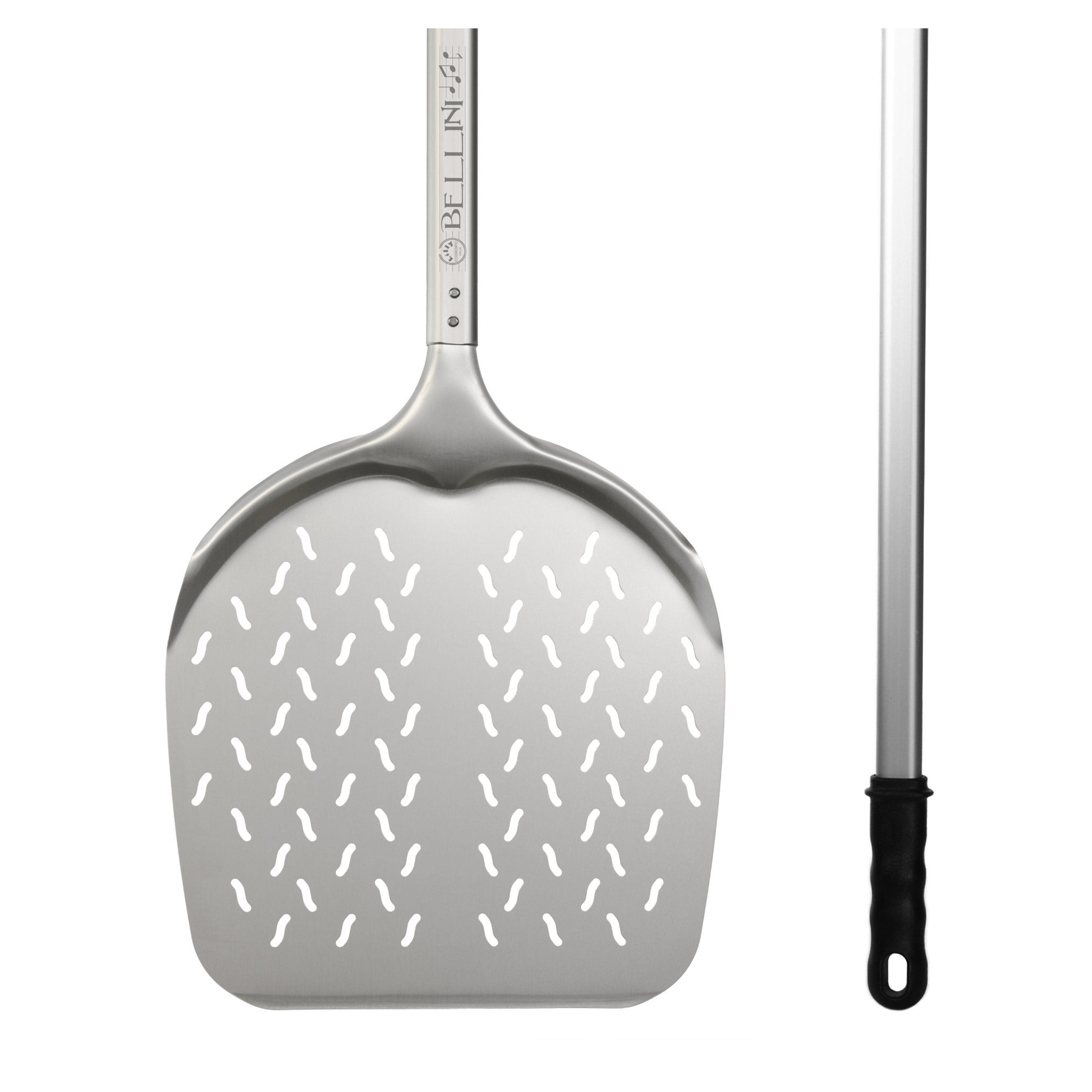 Completamente forata, in lega di alluminio anodizzata, ha una buona resistenza ad usura e al calore. Presenta un inserto posteriore in alluminio, che ne aumenta la resistenza, un solido fissaggio con ribattini e la punta assottigliata per facilitare la salita della pizza.