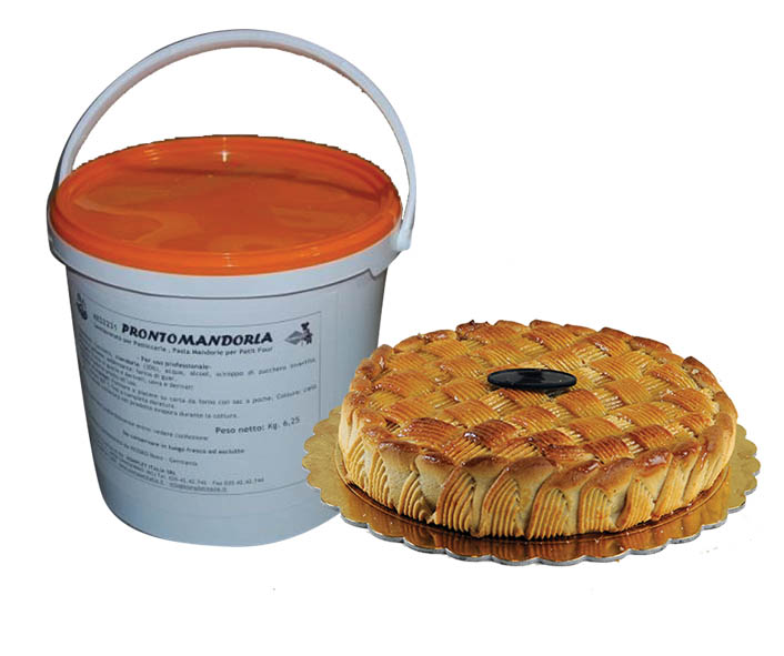 Pasta di mandorle (45% inclusa acqua) pronta all’uso per la produzione di pasticcini da the, Petit Four, per farcitura e decorazione di torte tipo Delizia.