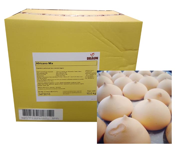 Preparato completo per basi a montata leggera. Ideale per savoiardi, africanetti, teste di moro, tette delle monache, cassatine, Joconde, Charlotte, ecc. Dose base: 600gr mix, 600gr uova, 200gr acqua