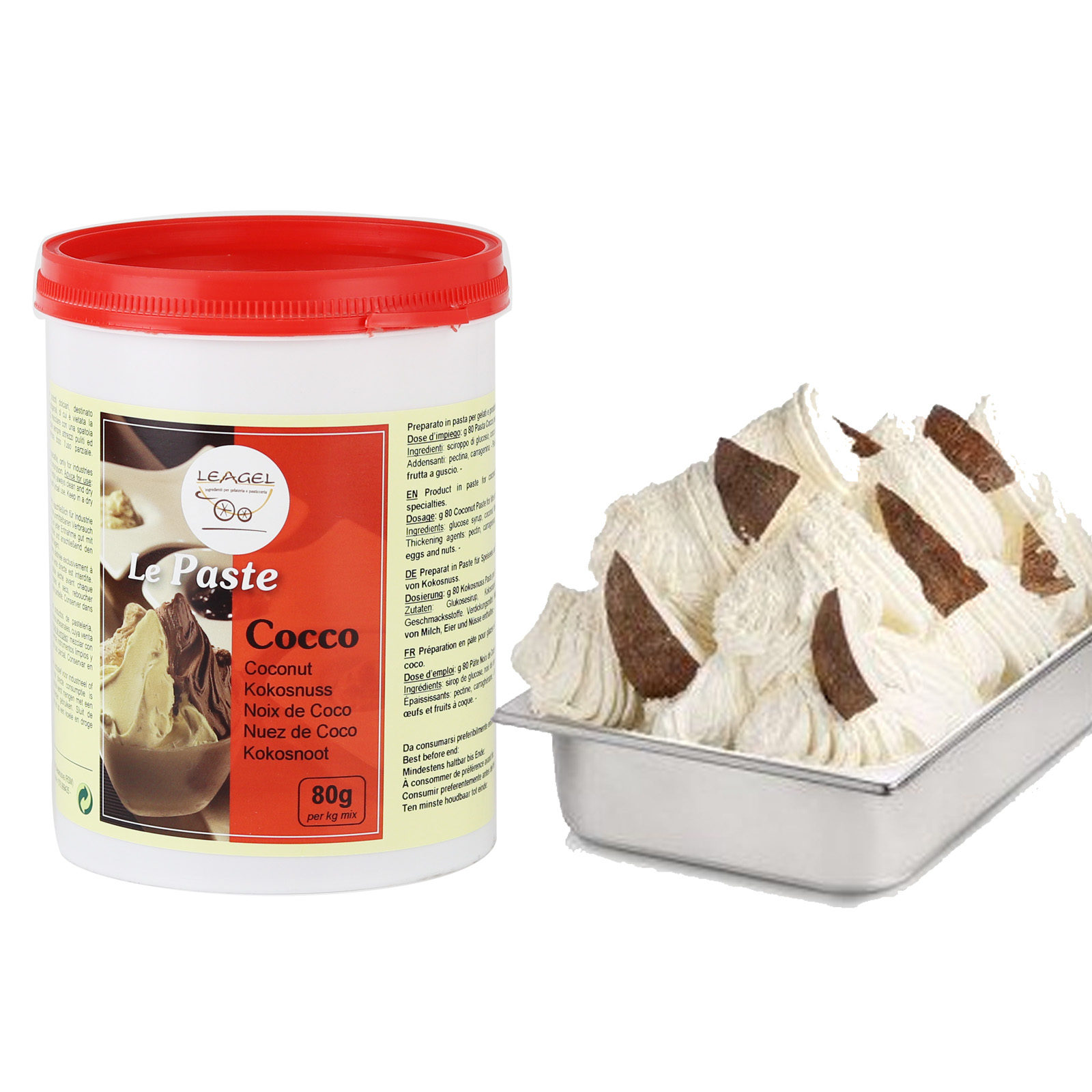 Pasta al gusto di cocco. Ideale per gelato, aromatizzare dessert freddi, dolci al cucchiaio, creme e panna montata.