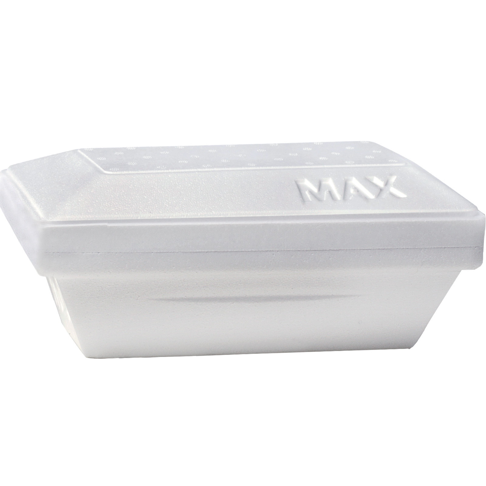 Vaschetta termica da asporto in polistirolo con coperchio e velina.